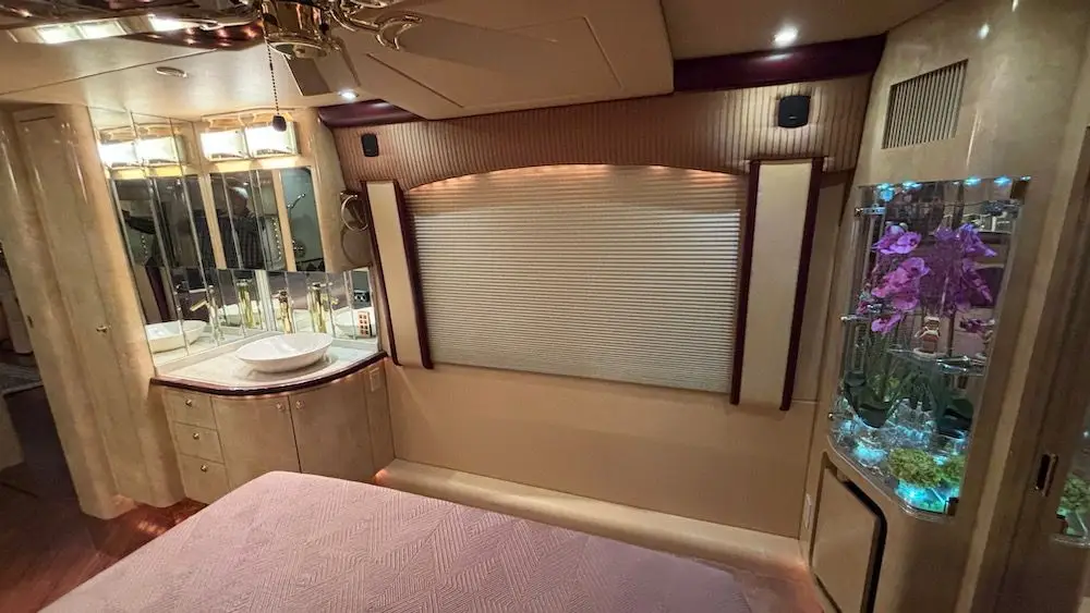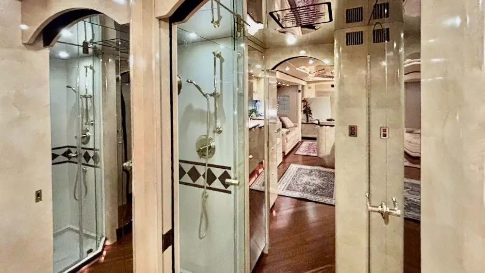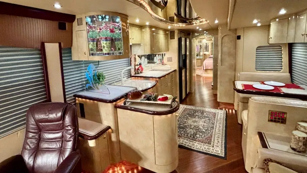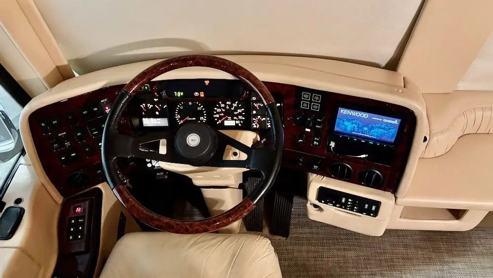 This particular coach has been well maintained by an experienced owner, and includes a 20KW Powertech genset with turbo Kubota, 2-4,000 watt Trace inverters, AquaHot, 4-14,000BTU CruiseAirs, and more!